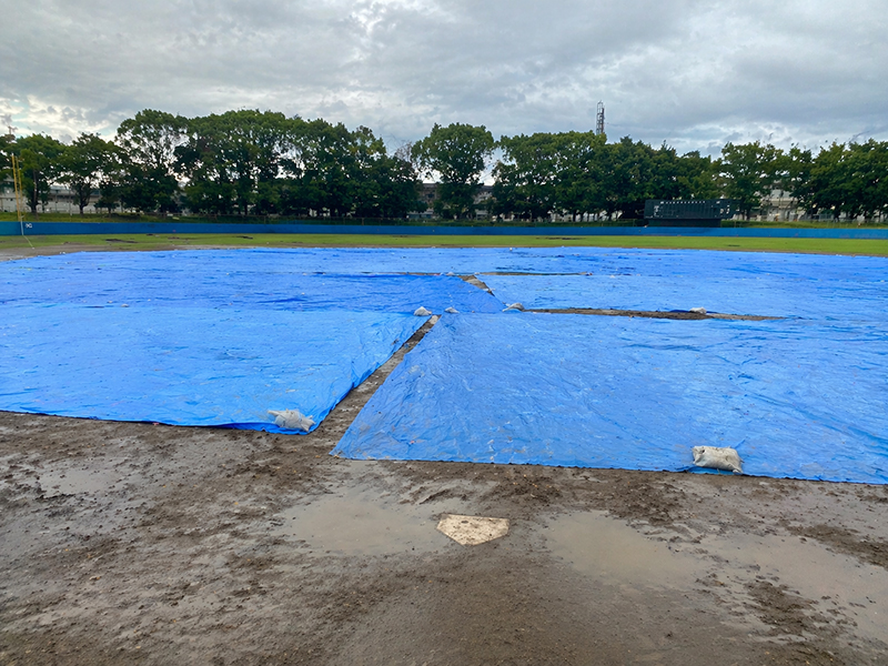 野球場の雨対策|水たまり防止にグラウンドシートという選択