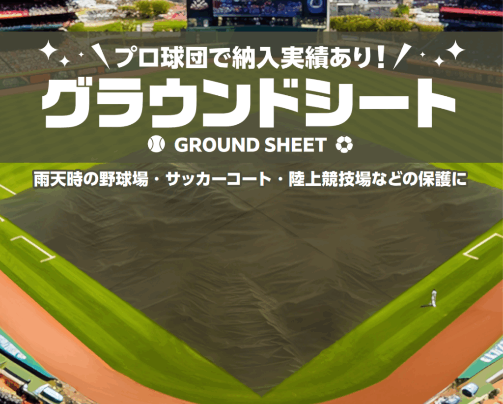景観保護シート グラウンドシート(野球場雨対策・保護)/baseball field coverグラウンドをしっかりカバー!グラウンドの水たまり、ぬかるみ対策のための特大防水シートです。市営球場、スポーツ施設などの管理に。特注可能約2年受注生産景観保護シートデザインシート(フェンスシート)デザインが施された景観と安全に配慮した空間演出用シート景観保護シート